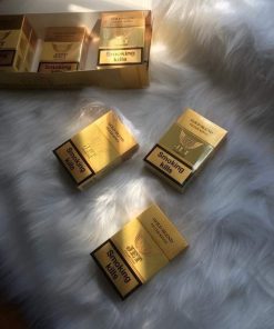 Hiện tại trên thị trường hoặc ở các cửa hàng duty free, bạn sẽ thấy có thêm dạng jet vàng hộp thiếc nhìn khá là bắt mắt và có thêm phần sang trọng.Tuy nhiên theo đánh giá thì chất lượng của hàng thiếc chỉ nhĩnh hơn một tí ti thôi.Bên trong của nó cũng là những gói thuốc lá bằng hộp giấy bình thường thôi nhé chứ không phải là hộp thiếc đâu.Còn đối với Shop đã trãi nghiệm với sự tập tành hút thuốc thì em thấy 2 loại này không có gì khác nhau.Đây là trãi nghiệm của em nên quý khách thông cảm nhé.